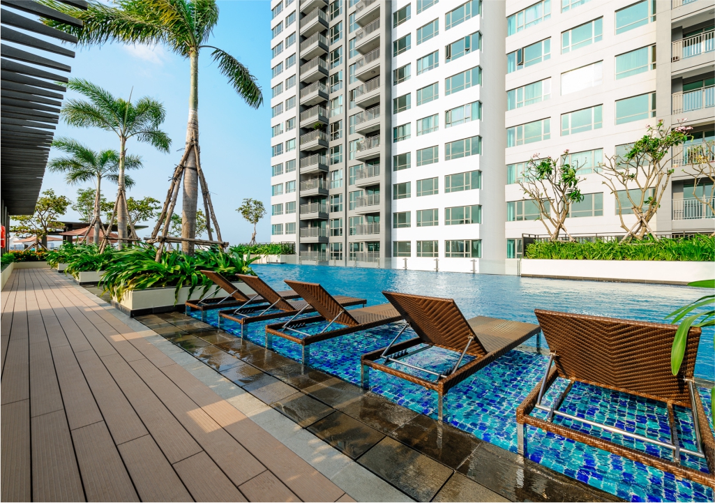 * Tiện ích nội khu đầy đủ hiện đại; hồ bơi nước ngọt, hồ bơi nước mặn, gym, BBQ, Phòng vui chơi trẻ em, vường đi bộ trên cao,…